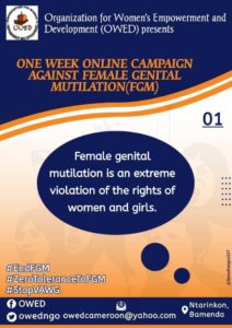 In February 2023, the Organization for Women Empowerment and Development (OWED) launched a one-week online campaign against Female Genital Mutilation (FGM) under the theme: “Partnership with Men and Boys to Transform Social and Gender Norms to End Female Genital Mutilation.”